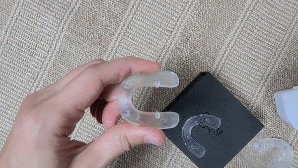 치아에 딱 맞는 맞춤형 패드로 안전한 소재의 실리콘 패드를 사용했다.패드는 따뜻한 물로 연화시켜 치아에 맞게 성형도 가능하다.