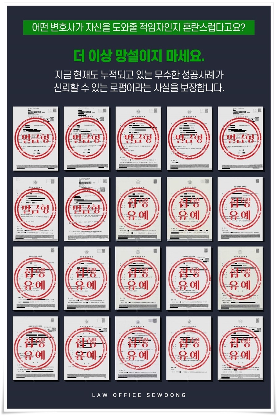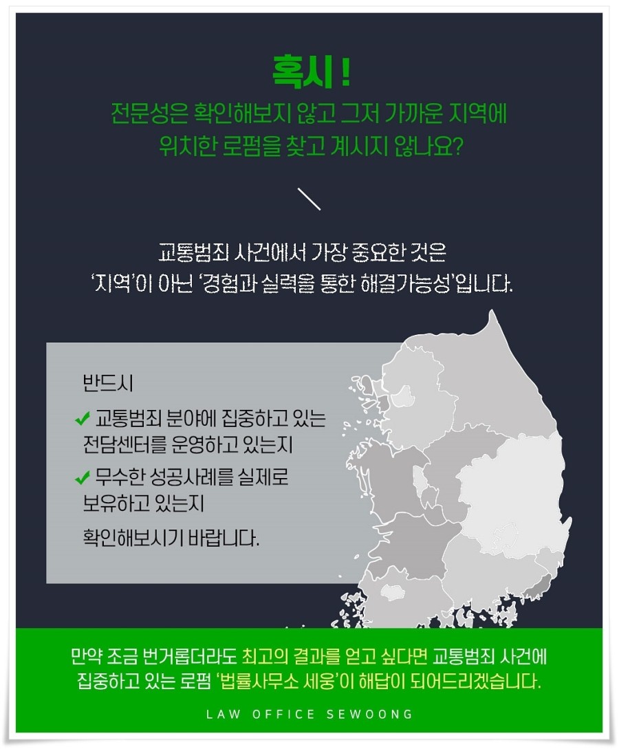 문제는 법원이 ‘음주운전 형사의 합의’ 또는 ‘반성한다’는 말만으로 선처를 결정할 수는 없다는 겁니다. 재판부가 선처를 결정하기 위해서는 각종 근거가 필요하기 때문에 이러한 근거를 마련하는 것이 중요하다는 것을 말씀드리고자 합니다. 다른 사례와 달리 선처를 결정해야 할 법률적 근거를 밝히지 않으면 법원은 형을 감경해야 한다는 주장에 회의적인 태도를 보이지 않을 수 없음을 명심하고 적절한 대안은 물론 가능한 모든 올바른 방안을 제시받아 적절히 대처해 달라는 마음이 큽니다.