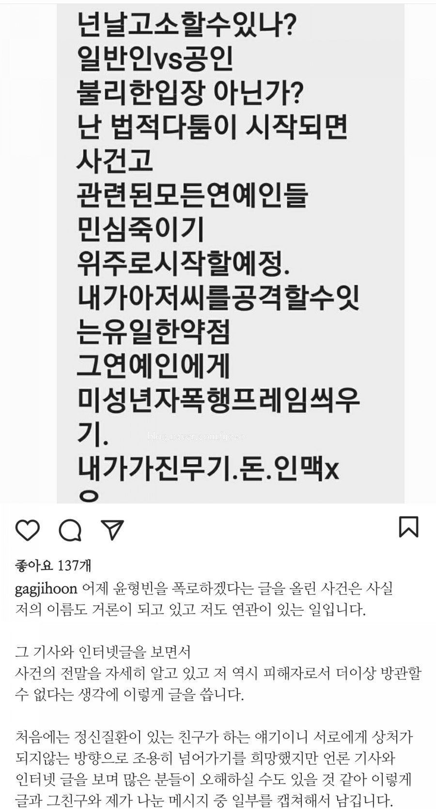 내가아저씨(윤형빈)를공격할수있는유일한약점,그연예인에게미성년자폭행프레임을씌운다라는내용이담겨있어요.