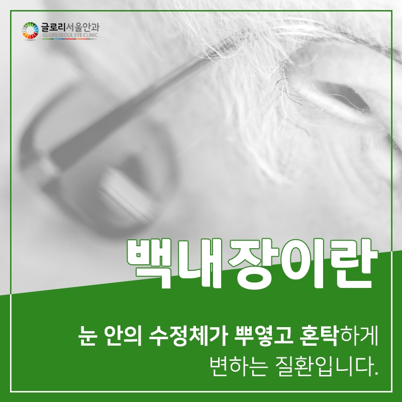 어느 날부터 시력이 떨어져 전체적인 시야가 흐릿하고 흐린 증상이 계속되면 백내장을 의심해야 했습니다.눈에는 카메라 렌즈와 비슷한 역할을 하는 수정체라는 조직이 있어서 외부의 빛을 깨끗이 투과시키고 망막에도 정확한 상을 만들 수 있는데 노화나 안구외상, 영양결핍, 가족력, 당뇨 등의 선천적 혹은 후천적 요인에 의해 수정체가 본래의 투명성을 잃어 탁한 상태가 되면 시야까지도 온통 흐릿하게 보일 수 있습니다.