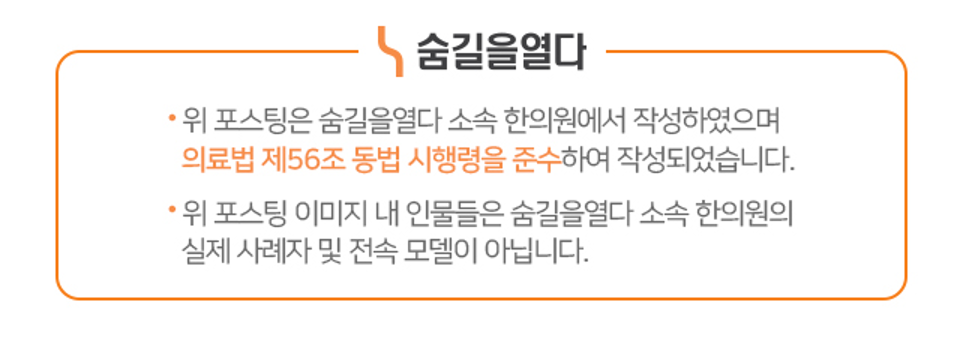 축농증의 치·료·부비강의 공기 통로 확보와 곰팡이에 대한 면역력 회복을 도울 수 있는 체열 불균형의 정상화가 이루어져야 합니다. 남들처럼 숨 편히 쉬고 싶어요? 이제 숨을 곳을 열고 한방병원의 문을 두드리세요. 함께 하겠습니다 🙂