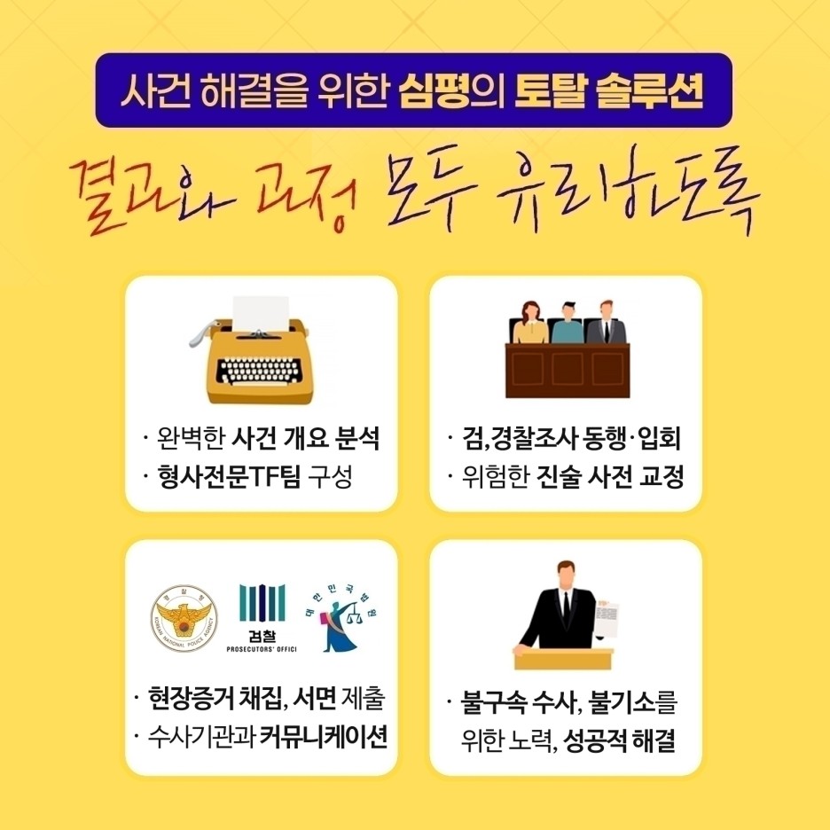 또 수사를 진행하면서 황급히 불리한 진술을 하기도 합니다. 그러나 이렇게 잘못된 대응과 진술을 계속하면 더욱 사건 해결의 어려움을 느끼게 될 것입니다. 경찰 조사 전에 철저한 초기대응을 통해 위기를 모면하거나 이미 조사한 후 양형을 위해 반성문과 탄원서를 고려하신 분은 전문가의 도움을 받아 해결할 필요가 있습니다.