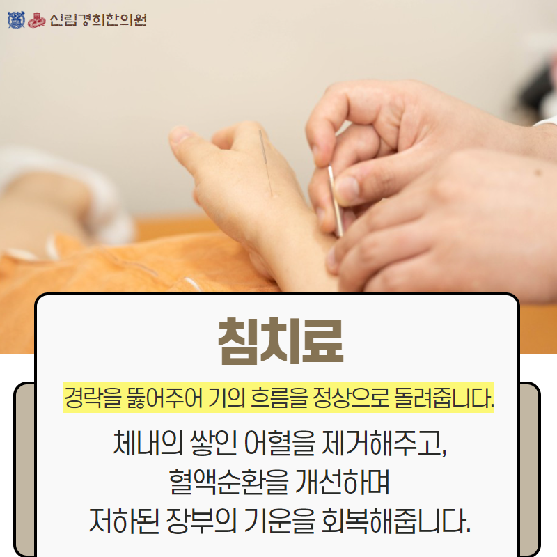 또한 내부의 습한 담이나 담, 어혈 등을 배출시키는 데 도움이 되는 침 치료도 함께 시행하고 있습니다.