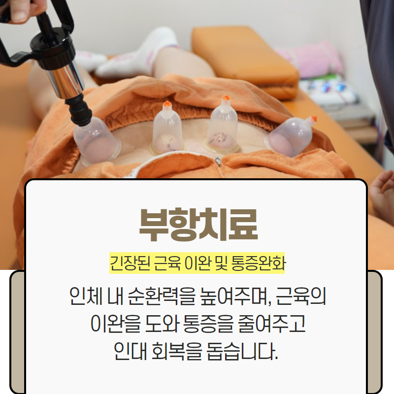 이는 혈액순환 개선과 근육의 긴장상태를 빠르게 완화시켜 통증을 해소하는 데 도움이 됩니다.