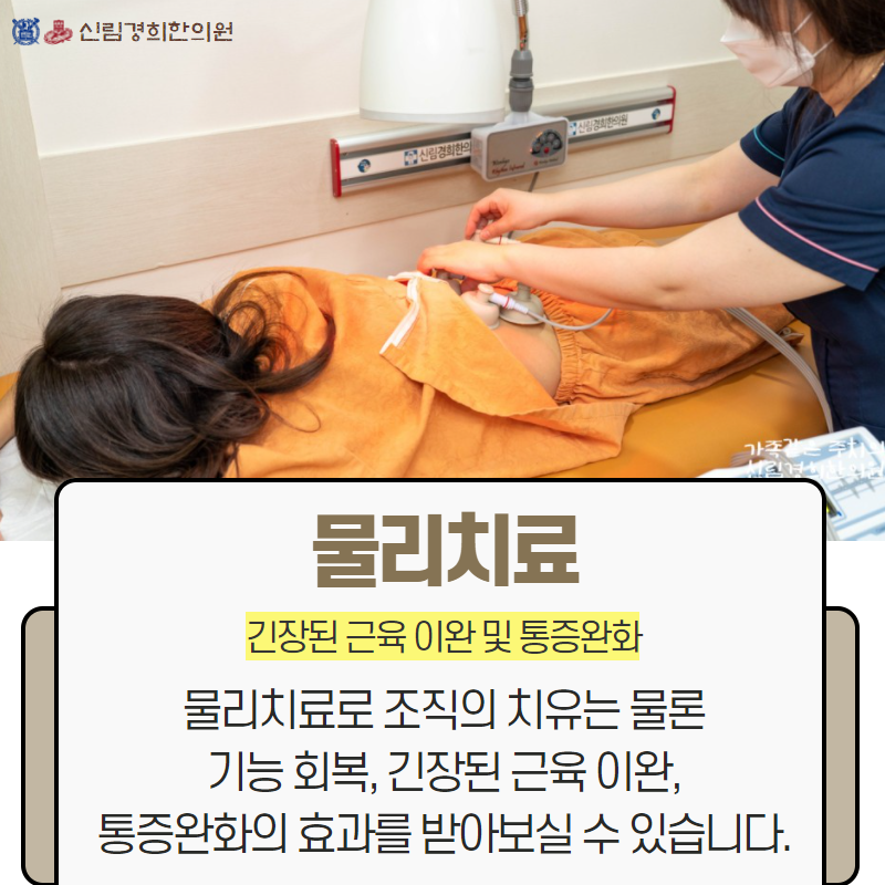 그 외에도 한약재와 약침 등을 병행하면 즉각적인 통증 개선은 물론 향후 염증 및 유착 등의 문제를 해결할 수 있습니다.