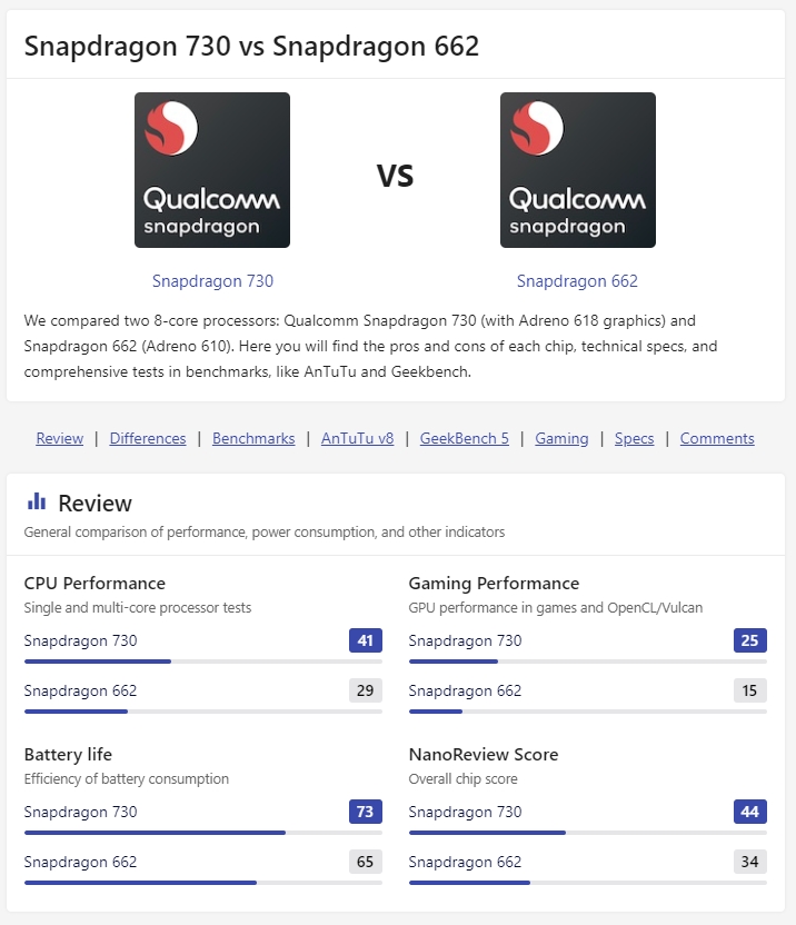 <2가지 모델 칩셋 성능 차이>