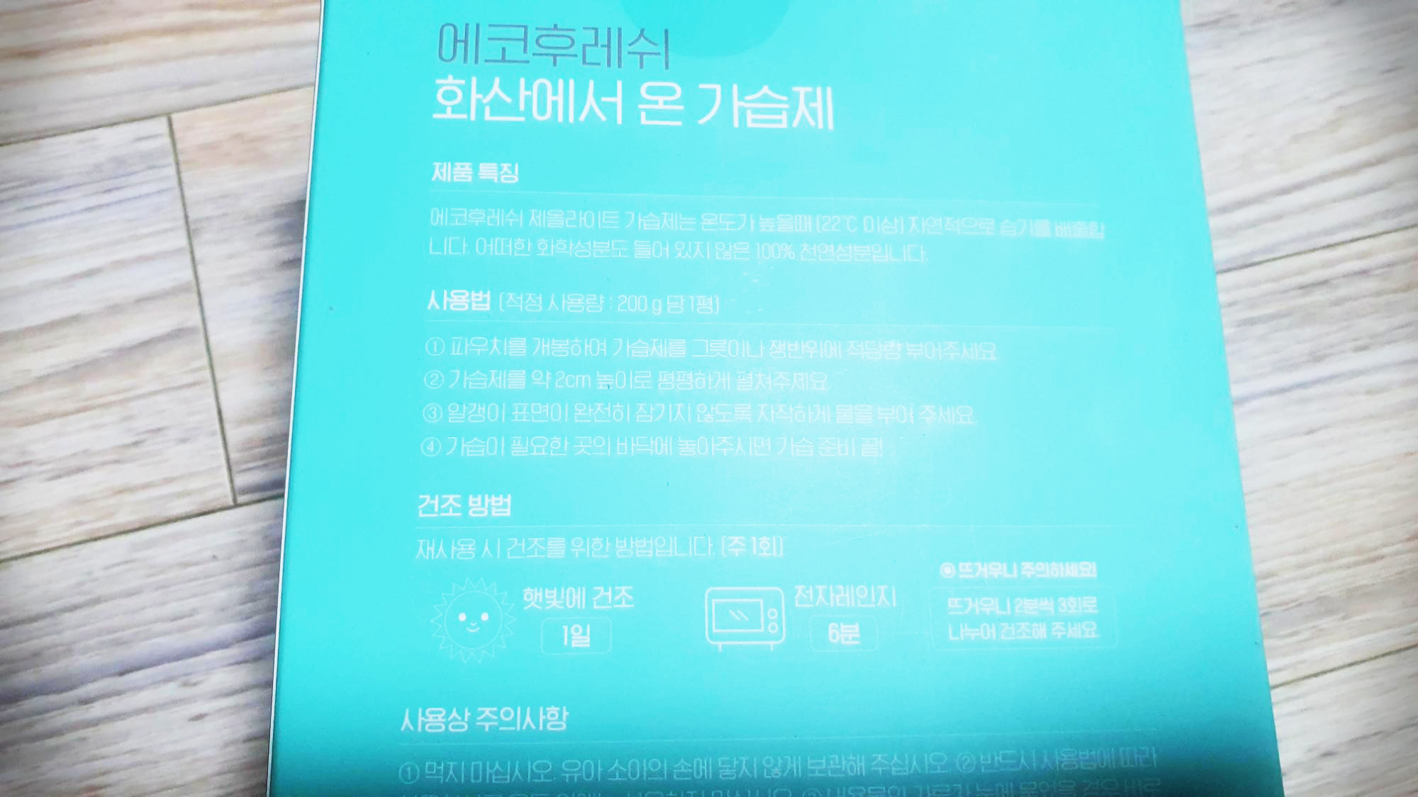 에코프레시의 화산재가습제는 #재활용 제품이므로 재사용 시 햇볕에 하루 정도 건조시키거나 or 전자레인지에 6분 정도 데우면 된다.(뜨거우니 2분씩 나눠 돌린다!) 지구에도 도움이 되는 제품이어서 내 취향이다.