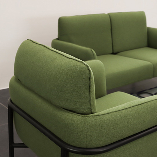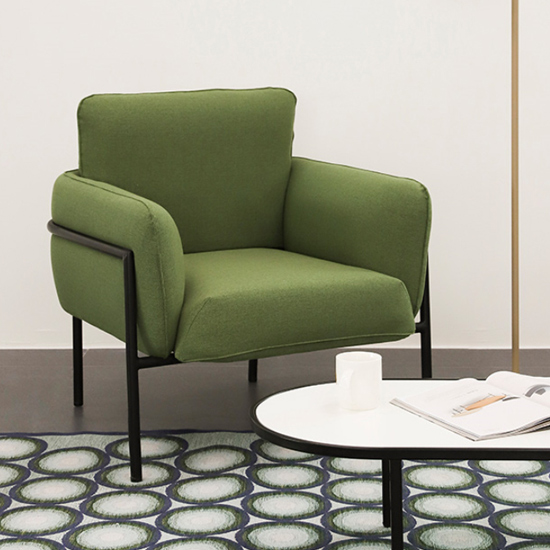 세련된 올리브 그린 컬러로 인테리어 분위기를 변화시키는 디자인으로 넓은 왼쪽에 편안한 앉는 느낌을 주는 의자입니다.