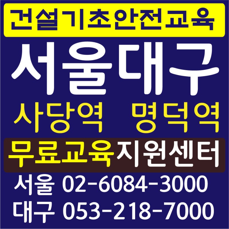건설업 기초 안전 교육을 받는 장소의 위치입니다.대구광역시 지수성구에 교육을 받는 곳입니다.교육을 실시하는 곳이며 대구경북지역 건설업 기초안전교육을 전문적으로 실시하고 있습니다.산업안전공단 등록노동부 허가를 받은 법적 교육기관입니다.S등급 최상위 등급의 교육장입니다.재발급 관련하여 온라인 확인 및 조회가 가능하며 이수증 카드 실물이 필요하신 분은 타 지역 수도권, 부산, 전라북도권에서 교육을 받으신 분 혹은 폐업한 기관에서 교육을 받으신 분은 재발급은 해당 기관에 사전 문의하여 방문하셔야 합니다. 만약 해당 기관이 폐업한 경우 안전공단에 문의하시기 바랍니다.재발급에 관해서는 사전에 문의나 시간 약속을 하고 방문해 주시기 바랍니다.기초안전교육증 건설기초안전교육경비비용 건설산업현장이수카드 건설안전보건교육 건설산업현장교육