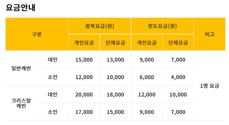 케이블카 요금