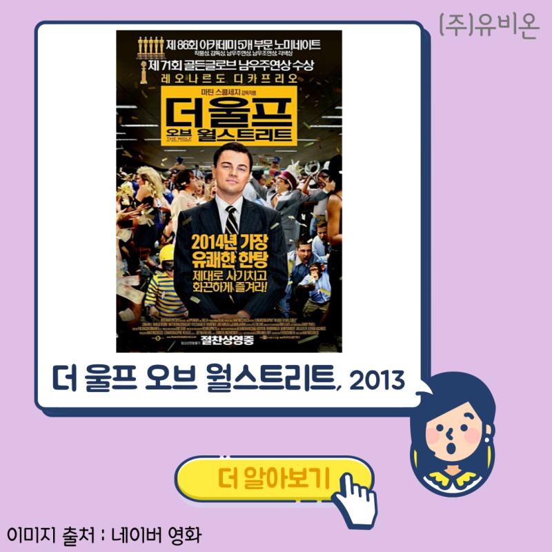 더 울프 오브 월스트리트 감독 마틴 스코세이지 출연 레오나르도 디카프리오, 조나 힐, 매튜 매커너히, 카일 챈들러, 장 뒤잘든 개봉 2014.01.09.