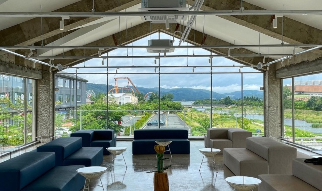 천군복합문화공간은 1층과 2층이 있습니다. 카페 안이 정말 넓어요. 그리고 통유리가 많아서 시원한 느낌이 들어요.