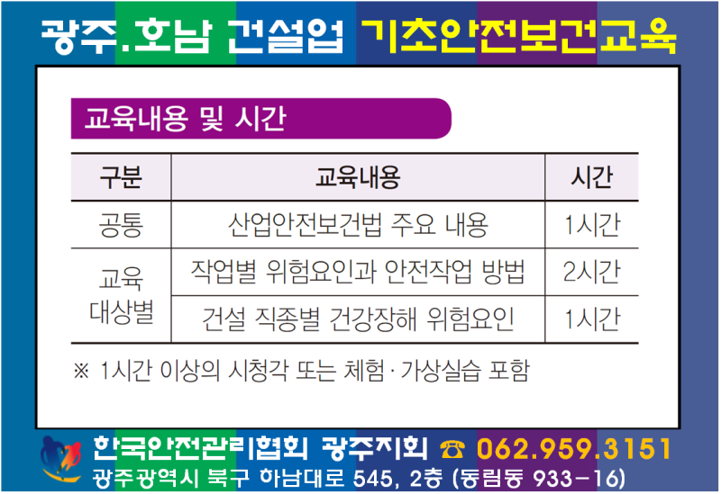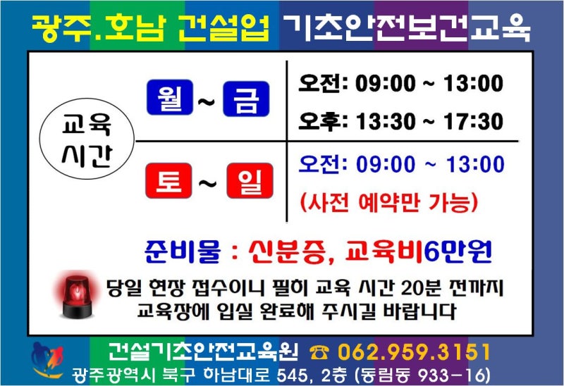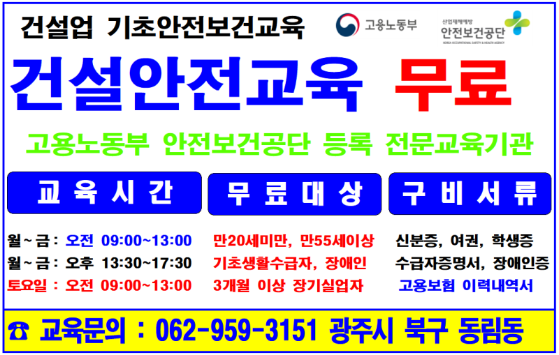 [건설기초안전교육 광주교육원 – HOME] 건설기초안전교육 062) 464-0001safeeducation.modoo.at