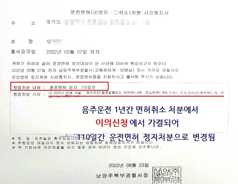 사례 5 : 치00(51세) / 경기도 수원시 음주운전으로 인한 삼진아웃 면허취소 구제사례!!