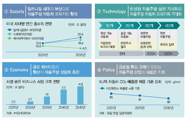 글로벌 자율주행 시장 2035년 1조달러, 세계 자율주행차 시장 2035년 1조달러…연평균 41%↑’한국 기술개발 환경·규제 개선의 미일보다 느린’ 자율주행 상용화를 위해서는 기술발전 단계에 맞춰 제도를 정비해야 한다는 의견이 나왔다. 한국경제연구원(이하 한경연)은 자율주행차의 글로벌 시장 선점을 위한 경쟁이 치열한 가운데 주요국 법제도 정비 속도에 비해 우리나라 제도 www.hellot.net
