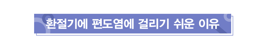 앞에서 보신 것처럼 급성 편도염은 피로가 쌓이거나 온도 변화에 노출되었을 때 흔히 발생합니다. 환절기에 기온차가 크면 면역력이 약해지고 건조한 호흡기로 세균이 침입하기 쉬워져서 편도염 같은 급성 호흡기 질환에 걸리기 쉽습니다. 특히 성인에 비해 면역력이 약한 우리 아이들은 환절기에 면역력이 더 약해져 편도염에 걸리기 쉽습니다.