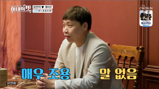 지난 10월 13일 TV CHOSUN에서 방송된 ‘세상 어디에도 없는 아내의 맛'(이하 아내의 맛이라고 한다)에서 개그맨 이상준이 소개팅하는 모습이 방영되었습니다.