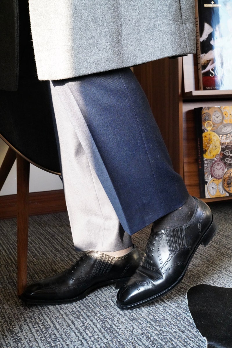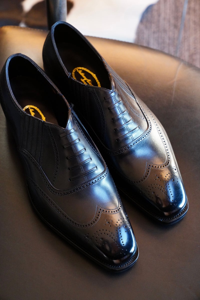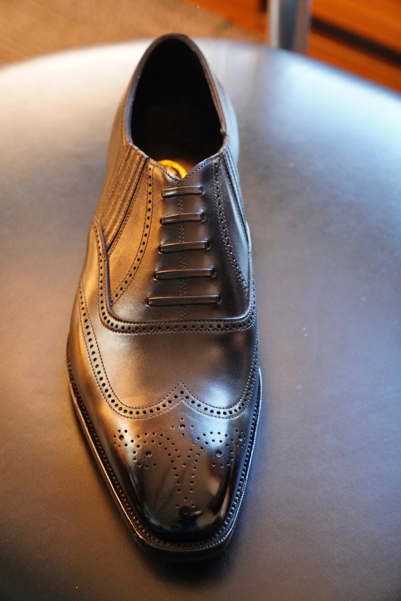 앤서니크 레버리 하나하나 바느질을 넣은 듯한 솔기 마감, 그 디테일함은 견고함을 자랑하며 오래 신어도 가죽이 변형되거나 힐컵이 무너지지 않는 데 큰 영향을 미치는 것 같습니다.이런 점이 다른 슈즈들과 많은 차이라고 생각하지만 가죽의 퀄리티 또한 타의 추종을 불허하며 블랙 카프 스킨의 부드러움과 은은한 자체 광택은 매우 만족스럽습니다.