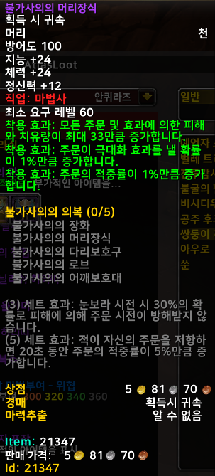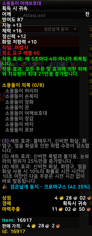 [와우클래식] 6페이즈 화산심장부,검은날개둥지,줄그룹,앵클래즈직원,낙스마스까지 마법사(법사)아이템정리 및 소개