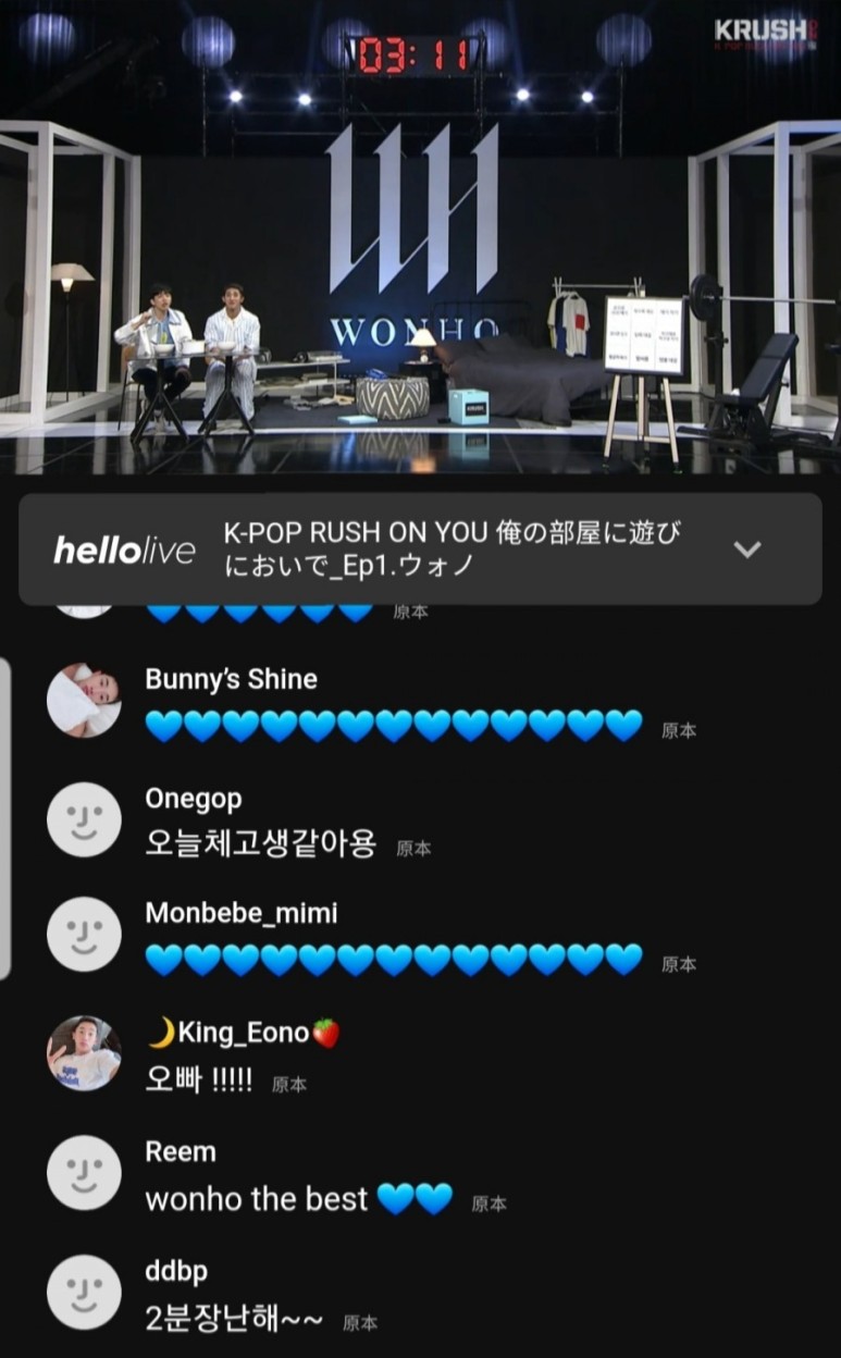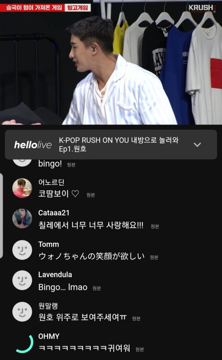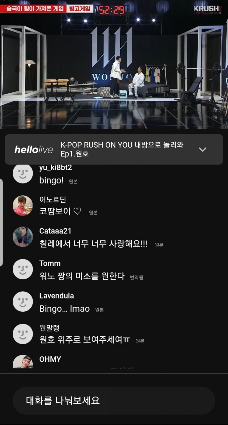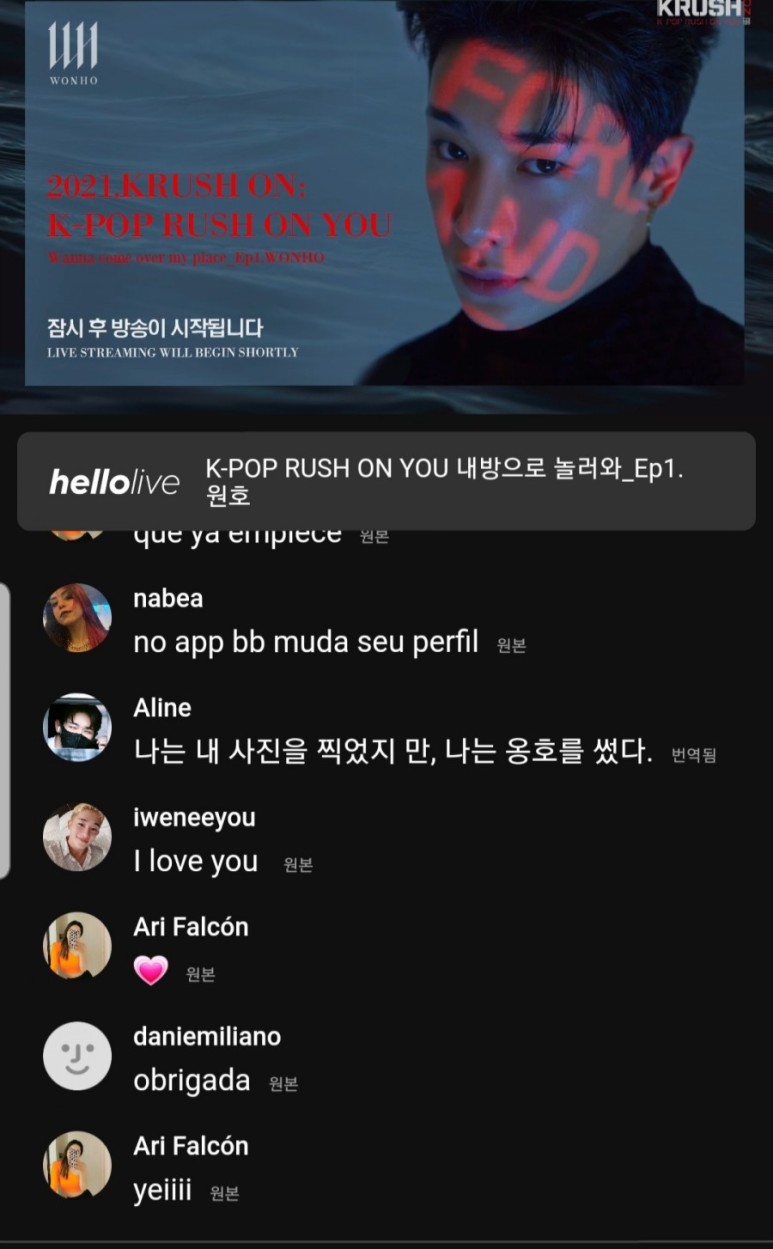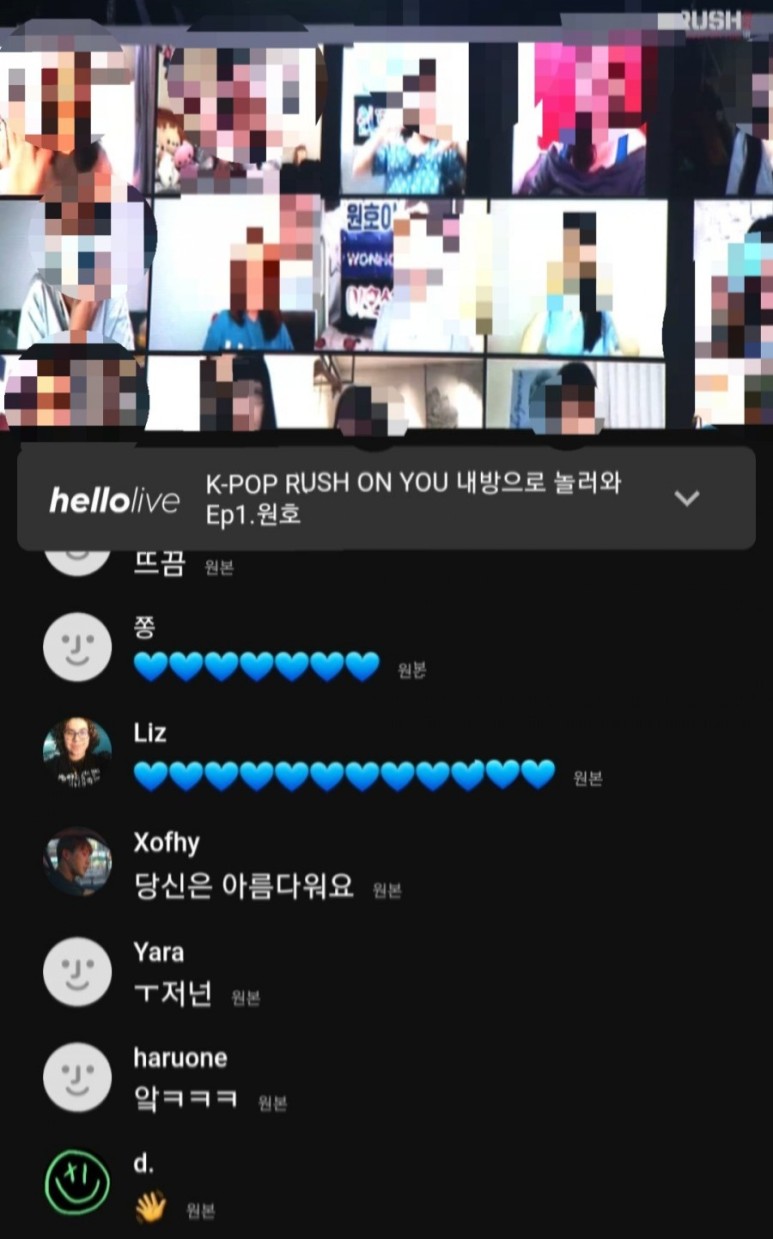 대기실에서는 전 세계에 있는 원호의 팬들이 모여 이야기를 나눌 수 있다.