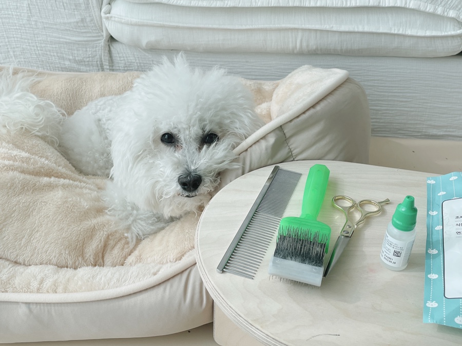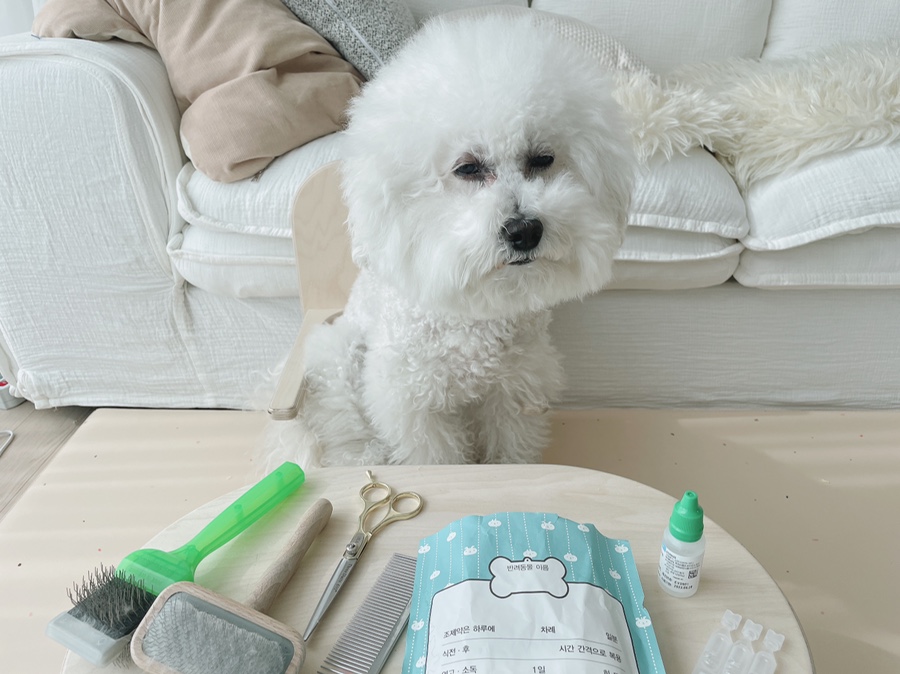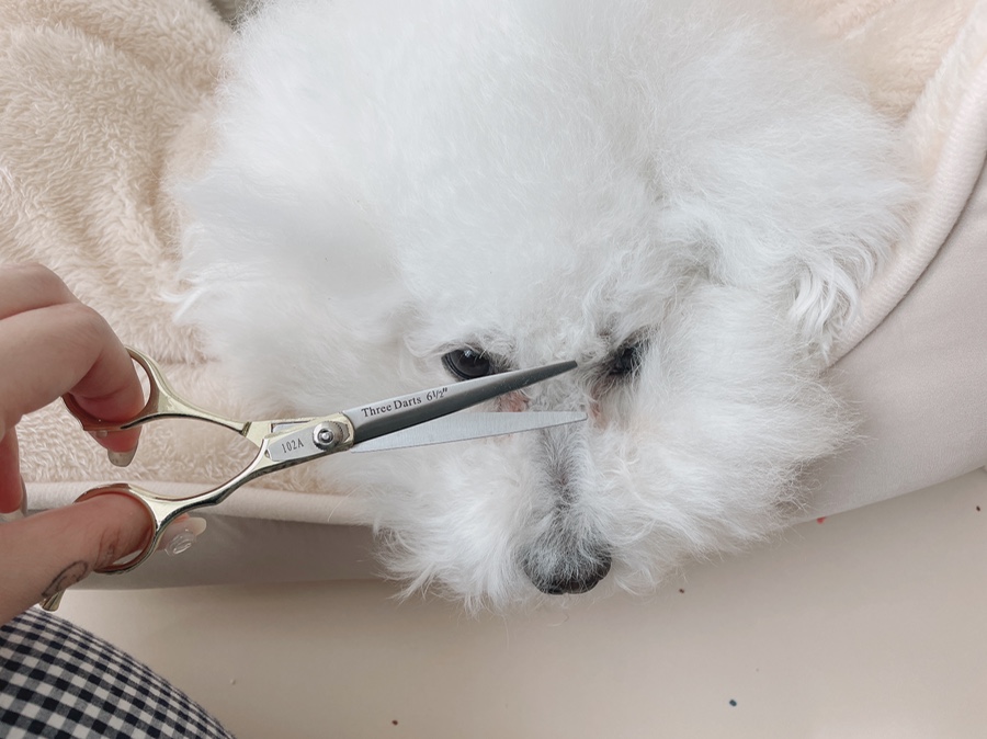 일단 모든 강아지 눈병은 똑같이 눈가를 예쁘게 해드리고 눈가의 털이 눈을 찌르지 않도록 위생적으로 잘라주는 게 좋다고 하는데 원래 강아지 목욕마다 정리를 해주시는 분인데 며칠 동안 제가 계속 아파서 정리를 소홀히 해서 그런지 괜히 미안한 마음으로 호닥 눈가의 털을 정리해 주셨어요