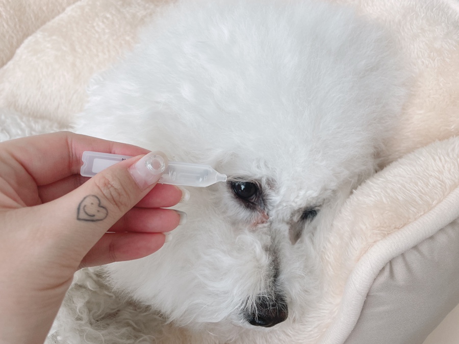 앙숙의 원인은 눈물샘분비장애, 환경적 자극, 식이요인, 감염, 면역반응 등 여러 가지 원인이 있다고 하는데 정도에 따라 부위를 찢는 경우도 있는데 하루는 아기개의 안약을 넣고 눈가를 깨끗하게 관리해서 며칠 지켜보자고 해서 그렇게 했습니다.