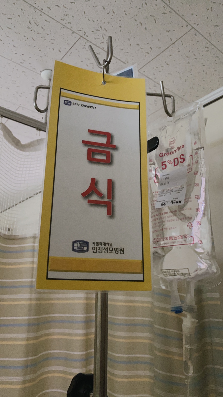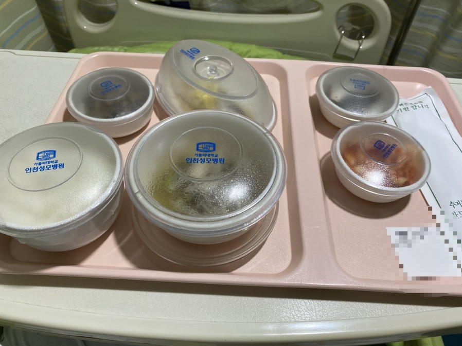 이게 바로 그 무통주사다. 주기적으로 계속 들어가지만 특히 통증이 심할 때는 버튼을 누르면 더 많이 들어간다. 병실로 돌아와 마취제 탓인지 졸린데도 자면 안 된다고 했다. 나중에 네이버에 쳐보니까 뇌세포 죽는다고? 엄마가 계속 깨워줬어 근데 진짜 졸려 눈을 뜨기가 힘들 정도로수술 2시간 뒤 정도에 화장실을 다녀온 뒤 첫 식사를 할 수 있었다. 식사는 죽 근데 먹기 힘들어서 한두 그릇 정도 먹었어