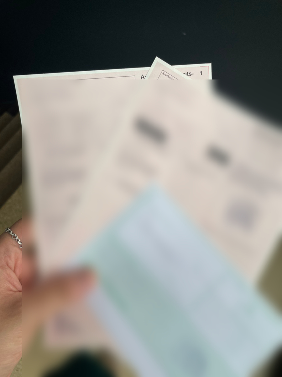 이렇게 종이를 3장 받았는데 하나는 본인용, 하나는 회사 제출용, 그리고 맨 앞의 녹색종이는 약! 나는 완전 처음이라서 다시 물어봤다.