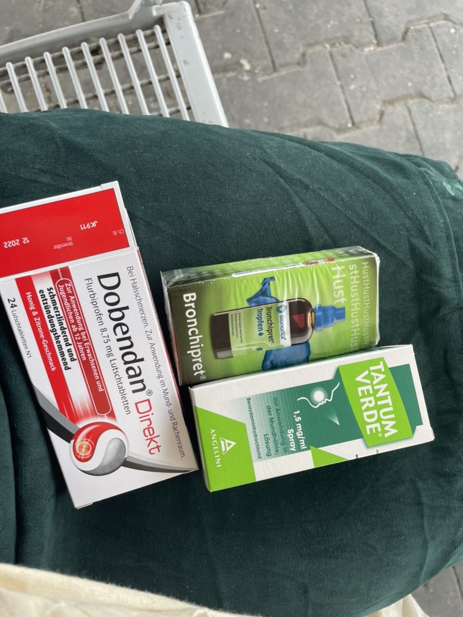 Dobendan Direct는 그냥 스트렙실 같은 거야.틴텀 Verde는 스프레이 같은 건데 아침에 일어나서 몇 번 뿌리고 밖에 들고 다니면서도 뿌리는… 효과가 좋은 것 같기도 하고 그냥 좀 진통제 역할을 하는 것 같기도 하고. 약국에서 둘이 같이 쓰는 건 투머치라고 해서 일단 저 스트렙실 같은 것만 먹고 다음날 뿌리는 것만 했다. 아직 3일째인데 낫지 않았어요.근데 약은 좋은 것 같아요.