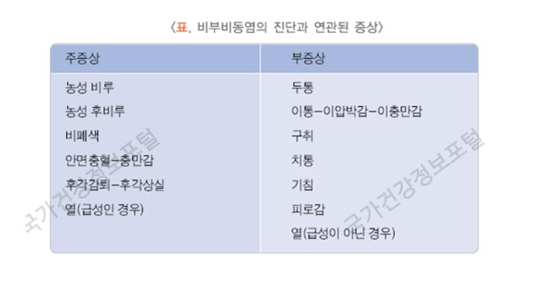 이외에도 비강과 부비강은 눈과 뇌에 근접해 있어 눈 주위에 봉와직염이 발생하기도 하며, 경막외 또는 경막하농양, 뇌농양, 골수염 등의 합병증을 유발하기도 합니다.