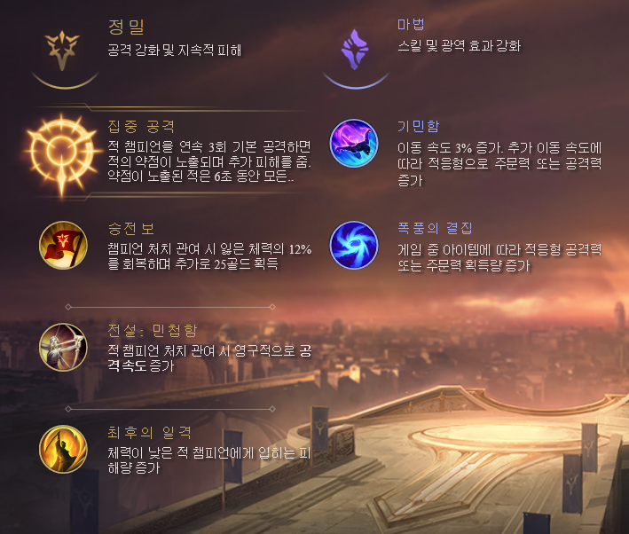 W 스킬 – 불타는 불꽃 : 전방에 논타겟팅 총알을 발사하여 적에게 적중하면 AP 피해를 입히고 6초간 표지판을 남깁니다. 표지판이 남아있는 적을 공격하면 루시앙의 이동 속도가 1초간 증가합니다.W 스킬 – 불타는 불꽃 : 전방에 논타겟팅 총알을 발사하여 적에게 적중하면 AP 피해를 입히고 6초간 표지판을 남깁니다. 표지판이 남아있는 적을 공격하면 루시앙의 이동 속도가 1초간 증가합니다.E 스킬 – 끈질긴 추격 : 짧은 거리를 돌진합니다. 패시브 적중 시 E 스킬 쿨타임이 감소합니다.E 스킬 – 끈질긴 추격 : 짧은 거리를 돌진합니다. 패시브 적중 시 E 스킬 쿨타임이 감소합니다.R 스킬 – 빛의 심판 : 루시앙이 전방으로 3초간 난사합니다. 난사하는 동안 이동이 가능합니다.스킬은 Q->E->W 순으로 찍어주세요. 룬(RUNES)과 스펠링루시앙의 룬은 집중 공격을 찍어주세요.패시브 때문에 집중 공격 스택이 빨리 쌓입니다.이겨내기 원딜의 생존율을 높이는 갓 특성입니다!전설 : 민첩성 공격 속도 증가 특성 마지막 일격녀의 적에게 추가 피해를 입힙니다.기민함 루시안의 W 스킬과 시너지 효과가 있습니다.폭풍 결집 게임 시간과 함께 AD가 증가합니다.서머너스펠은 고민할 필요 없이 힐과 점멸입니다! 아이템 트리아이템 트리는 이대로 고정입니다.루시앙템트리 중 가장 효율적인템트리입니다.마르모셔스, 헤르메스, 수호천사=생존용아이템 유령무희:치명타를 올리려고 하지만 블저가 많을 경우 고속연사포:없을 경우 무한대검:맥아이템 딜인양용 루시앙 기본활용법콤보활용1.E평방Q평방W평방E에진입하여평방망이Q평방터그리고트브루평방터후이속버프를받고빠지는기본콤보입니다.2.W편 E편 Q편 Q편 W 멀리서 합쳐 2속 증가 효과를 본 후편타를 최대한 쳐서 e편 Q편! 서포터에게 호응할 때 좋다.3.Q평평E평평W평평미니언을 먹는 상대를 q평평으로 견제한 뒤 앞으로 무빙해 cc를 제치고 후속딜을 넣는다.마지막으로 리그 오브 레전드 루시안은 평타 사거리가 매우 짧습니다.하지만 스킬을 이용한 평타 패시브, 그리고 그 패시브를 이용한 E쿨 타임을 줄여 슈퍼 플레이를 할 수 있는 OP 캐릭터 중 하나입니다.원딜픽률 중 3위를 차지하고 있는 루시앙!! 여러분 한번 해보시겠어요?#루시안룬 #루시안템 #루시안템트리 #루시안공략 #리그오브레전드 #루시안 #루시안룬 #루시안템 #루시안템트리 #원딜시안 #미들시안