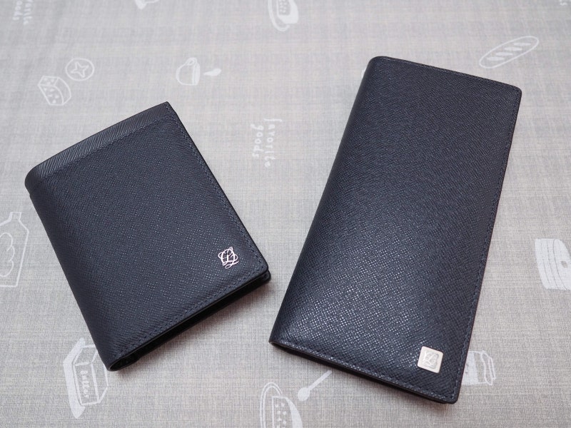 앞면에는 금속 브랜드 로고 장식이 있고 뒷면에는 심플하게 아무것도 없습니다.가죽은 사피아노 엠보 가죽을 사용하여 특유의 질감을 느낄 수 있습니다.
