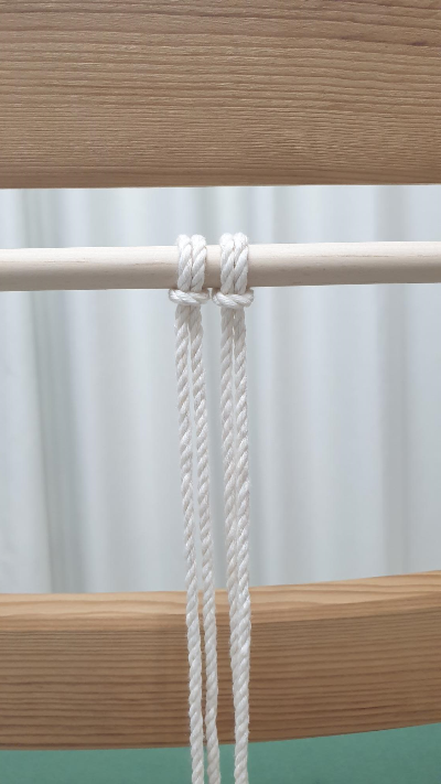 윗부분은 느슨하게 묶어서 기존 펠트 작품을 걸어줬어요.^^ 재료는 마크라메에 주로 쓰이는 솜털실을 사용하고 있습니다. 나무 재질과 잘 어울리는 가장 좋아하는 조합입니다.기본 매듭으로만 만들어 보기로 하고 단조롭지 않게 간격을 조절해 주었습니다. 간격을 조절하는 것만으로도 분위기가 확 달라지거든요.^^
