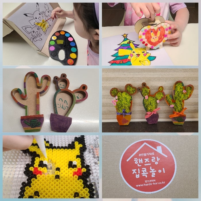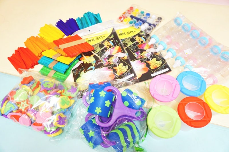 호일아트, 가죽 크로스백 만들기, 손거울 장식, 전통 꽃보석함 장식, 나무 기타 장식, 가방고리, LED 입체 나비 팔찌 장식 등 아이들이 고른 제품과 그에 필요한 아크릴 물감과 글루건까지 담아 택배상자 가득 배송돼 왔다. 아이들이 안전하게 만들 수 있도록 유아만들기재료핸즈코리아는 어린이안전인증을 통과한 상품을 판매하고 있는 것으로 알려졌다.
