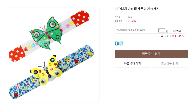 아들이 제일 먼저 만들어보니 고른 LED 입체 나비 팔찌 장식.