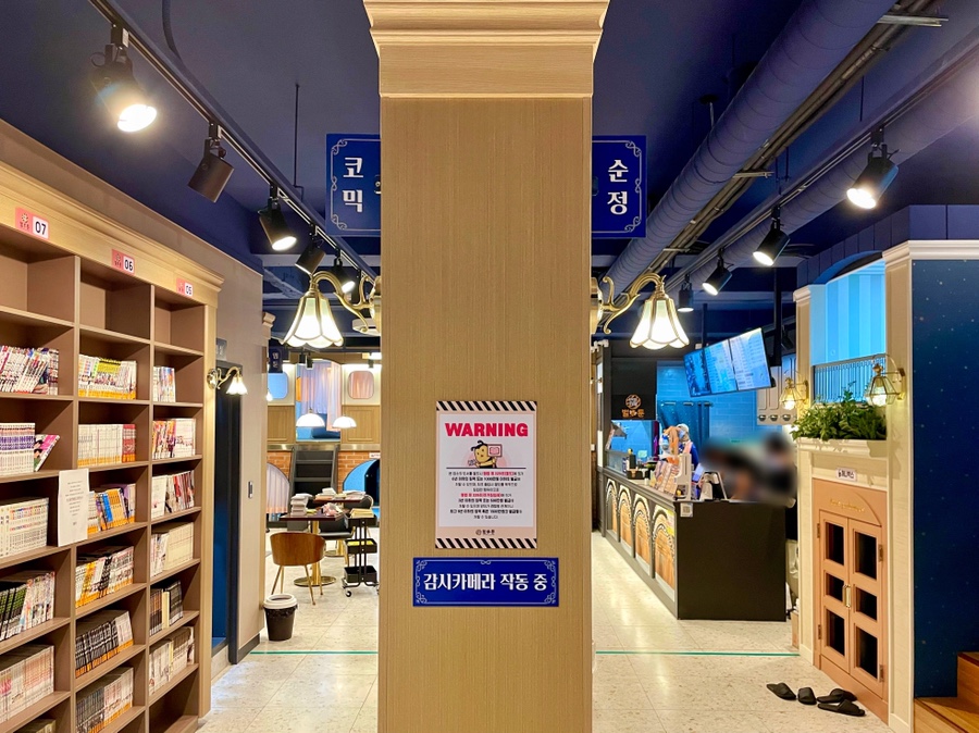 사람이 많을 때는 카운터도 정신이 없어서인지(?) 키오스크도 있었어요!물론 만화방에 자주 오는 연령층이 젊기 때문에 잘 다룰 수 있다고 생각합니다만, 키오스크 화면 옆에는 사용법도 쉽게 붙어 있기 때문에 걱정할 필요가 없습니다.^^