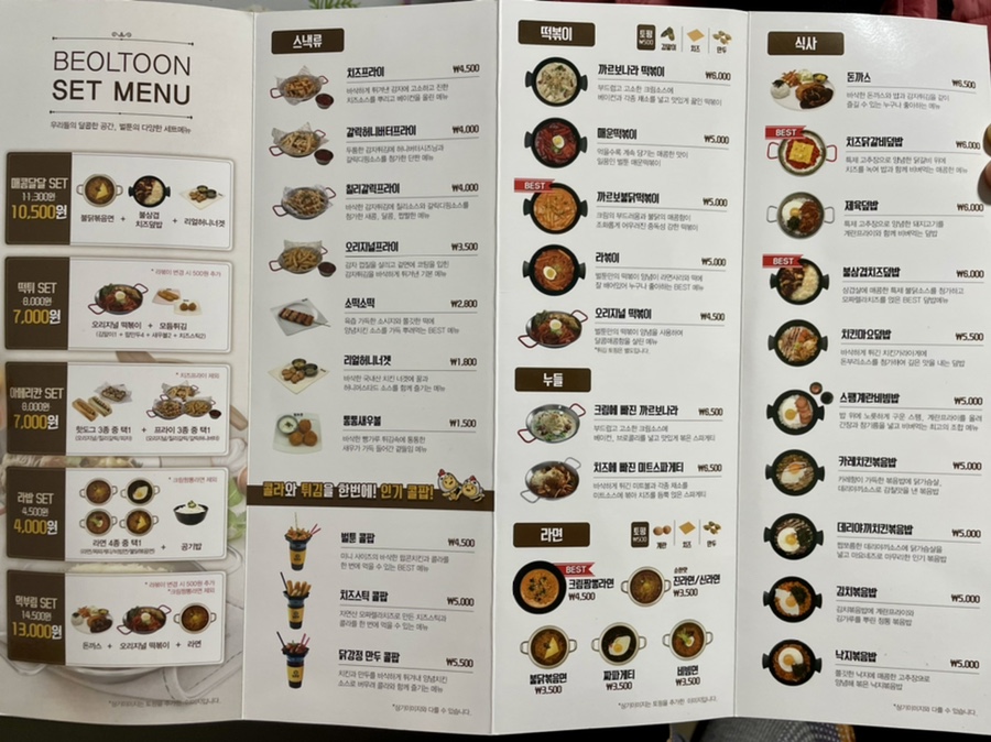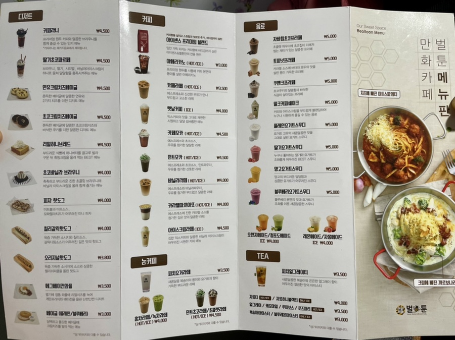 영주 만화방 발트원 요리 메뉴판 말하는 거