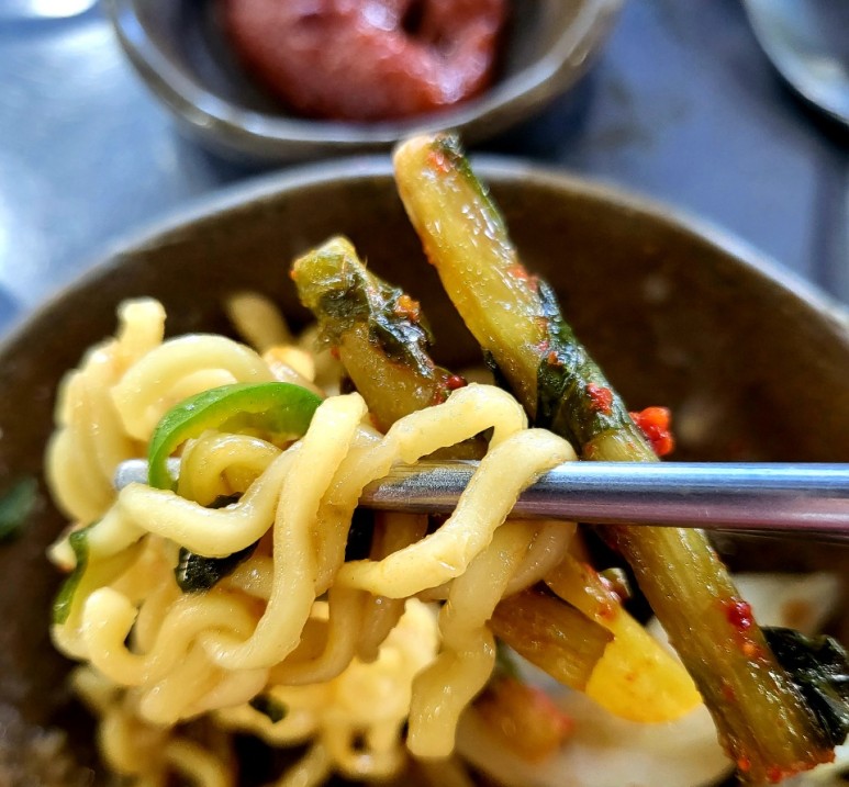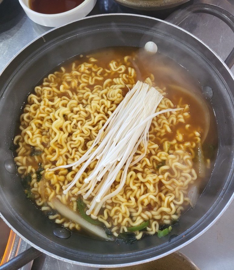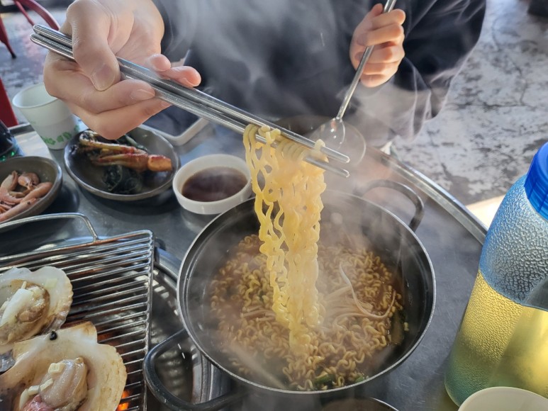 가리비를 숟가락으로 먹어서 배가 좀 느끼해요그래서 라면을 시켰어요