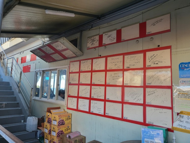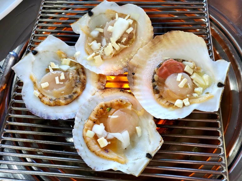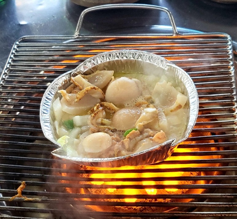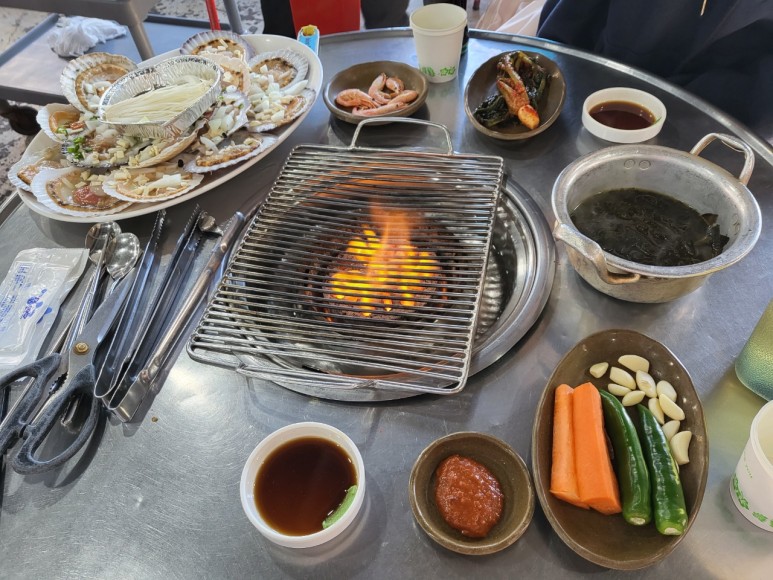 열무김치랑 먹으면 굉장히 찰떡궁합입니다.저희가 가리비를 너무 못해서 연기도 많이 내서 하나 태워먹었거든요많이 불편했지만, 아주머니께서 그리운 사투리로 가리비를 굽는 것을 보여주시고, 구운 가리비도 새것을 가져다 주셨습니다.감동이었습니다(´;ω;`)