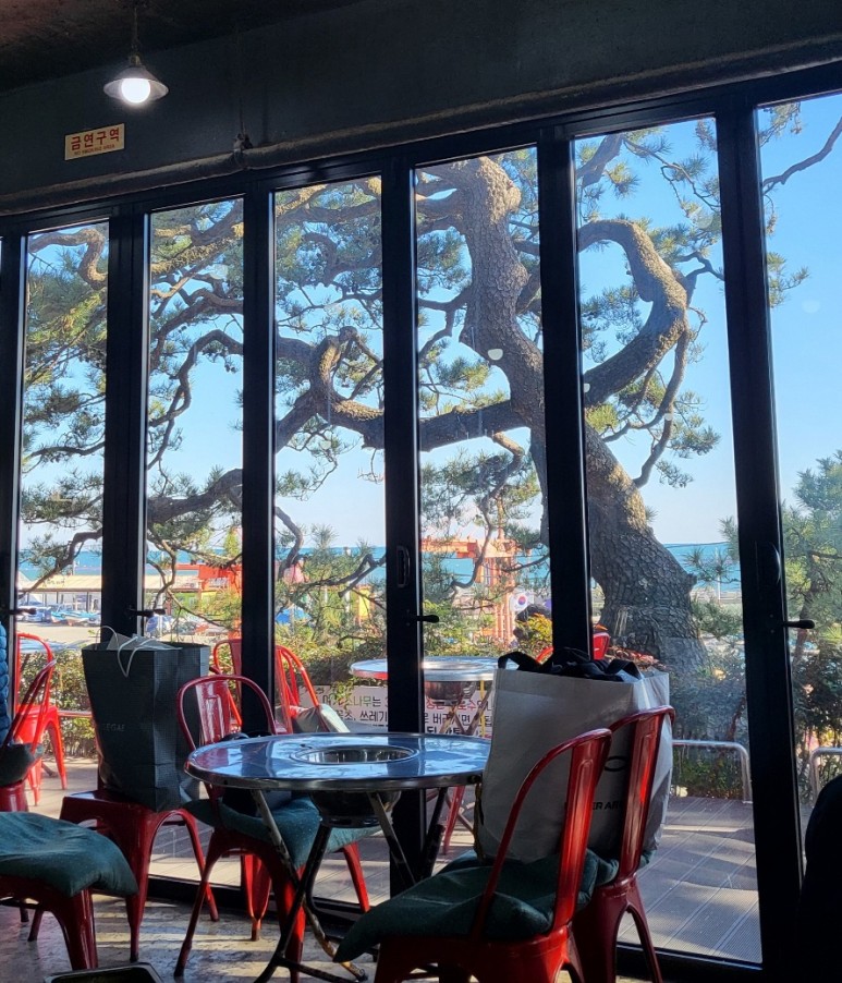 1층 내부에 창가 자리는 모두 손님이 앉아있었어요ಥ_ಥ역시 바다가 바로 보이는 자리라 인기석입니다