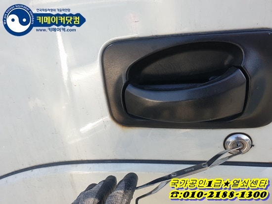 먼저 잃어버린 메가트럭 이모빌라이저 키를 제작하기 위해 운전석 도어 키홀에 전용공구를 걸어 열쇠구멍 안 각계의 핀 높이를 가늠하여 제작하는 키 정보를 만듭니다~
