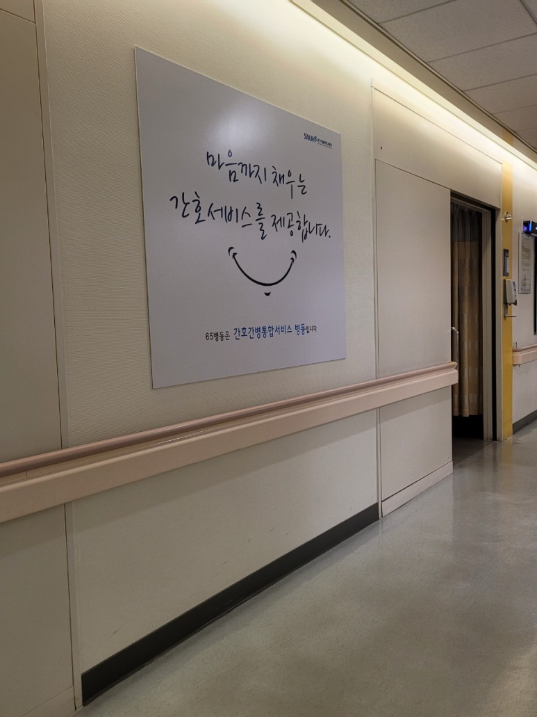 보호자와 함께 있는 일반병동과 간호사가 상주하며 보호자가 필요 없는(들어가서는 안 되는) 간호병동의 두 종류가 있는데 저는 간호병동을 추천합니다. 아팠을 때는 누군가가 곁에 있어서 저는 더 신경이 쓰였기 때문에 간호 병동이 아주 편했습니다. 그리고 이번에 느꼈지만 3교대로 환자를 집중 돌봐주시는 간호사님들, 정말 사명감 없이는 절대 할 수 없는 직업이라는 경외감이 들었습니다. 감사합니다간호사 선생님