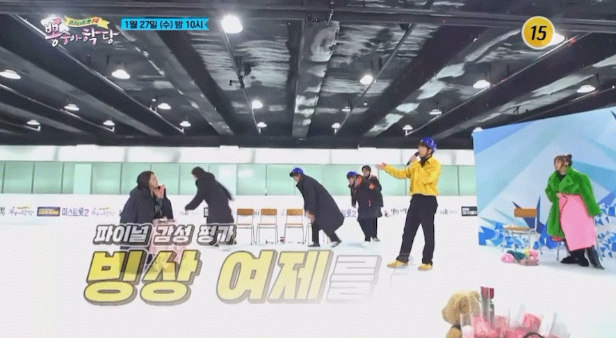 이어서 뿅망치로 술래잡기를 할 거예요 톱6 중에 1명이 13초 만에 이상화가 뿅망치를 맞아서 탈락했대요 너무 빨리 탈락해서 너무 아쉬워요
