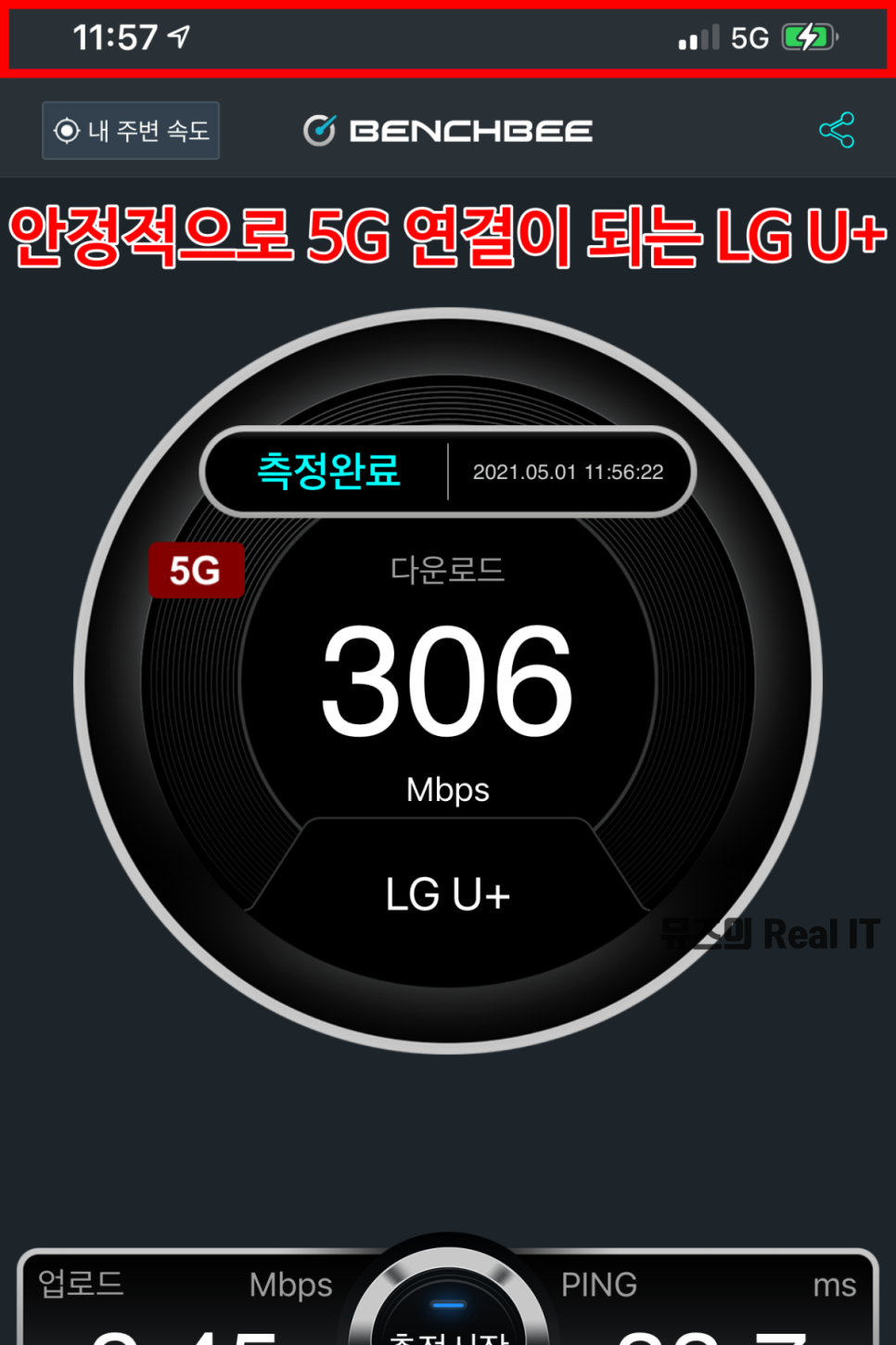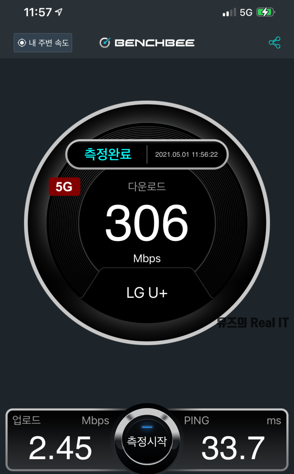 반면 5G에서는 실내에서 대개 200Mbps가 나오죠.