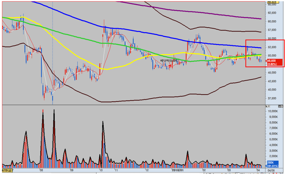 제가 무료 방에서 LG디스플레이를 장기 투자 종목으로 적립 금형 주식으로 추천했을 때 차트도 이렇게 설명했습니다.