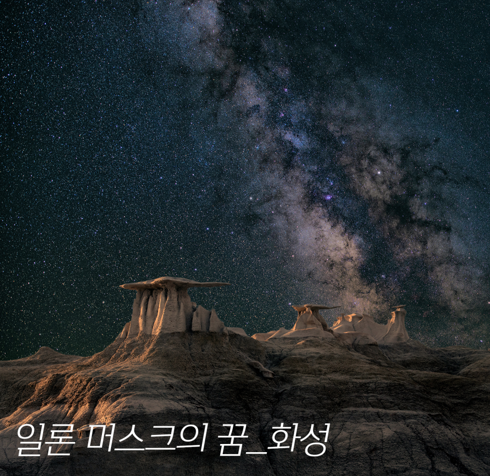 일론 머스크라는 인물의 궁극적인 목표는 [화성] 화성에 사람이 살 수 있는 세상을 만드는 것이 궁극의 목표!!공상과학 영화에나 나올 법한 그런 얘기죠~
