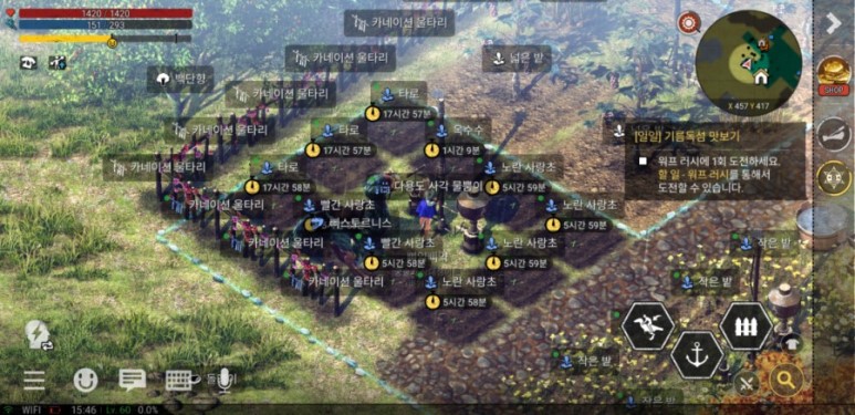 개인섬으로 돌아가 원래 있던 작물을 이리저리 치우고 새로 텃밭을 일군다.
