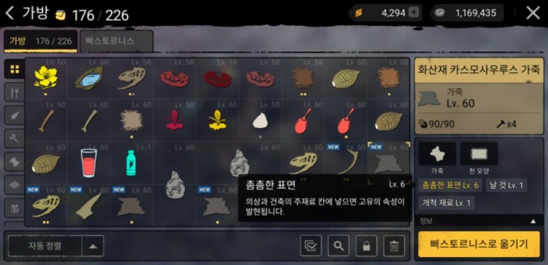 골묘? 크레이터에 있는 화산재 카스모사우루스 가죽은 촘촘한 표면 옵션이 붙어 있다.이게 화산섬의 기후저항이란다.