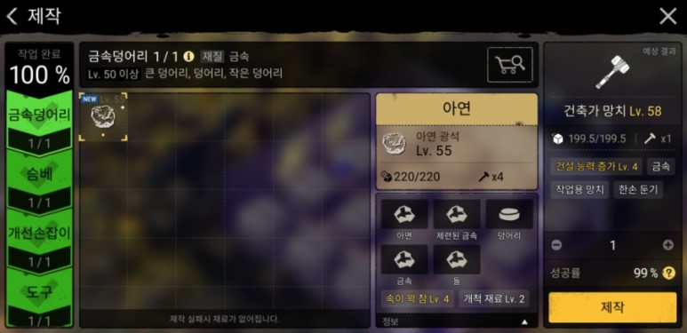 건설 능력을 더 키워야 한다.부계정에 건설 관련을 시키는데 건축가 해머를 하나 만들어야 한다.