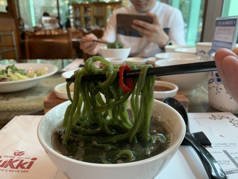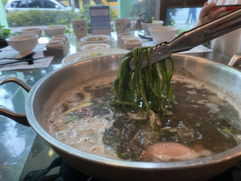 방이 맛있는 가게에서는 샤브샤브를 다 즐긴 후에는 그 국물에 칼국수와 죽을 끓일 수 있어요.이번에 갔을 때는 면을 만들어봤네요국물이 너무 진하고 깊은 맛이라 국물까지 다 마시고 와야 되는데요.좋은 재료의 깊이가 응축된, 이것이 바로 자양으로 연결됩니다!